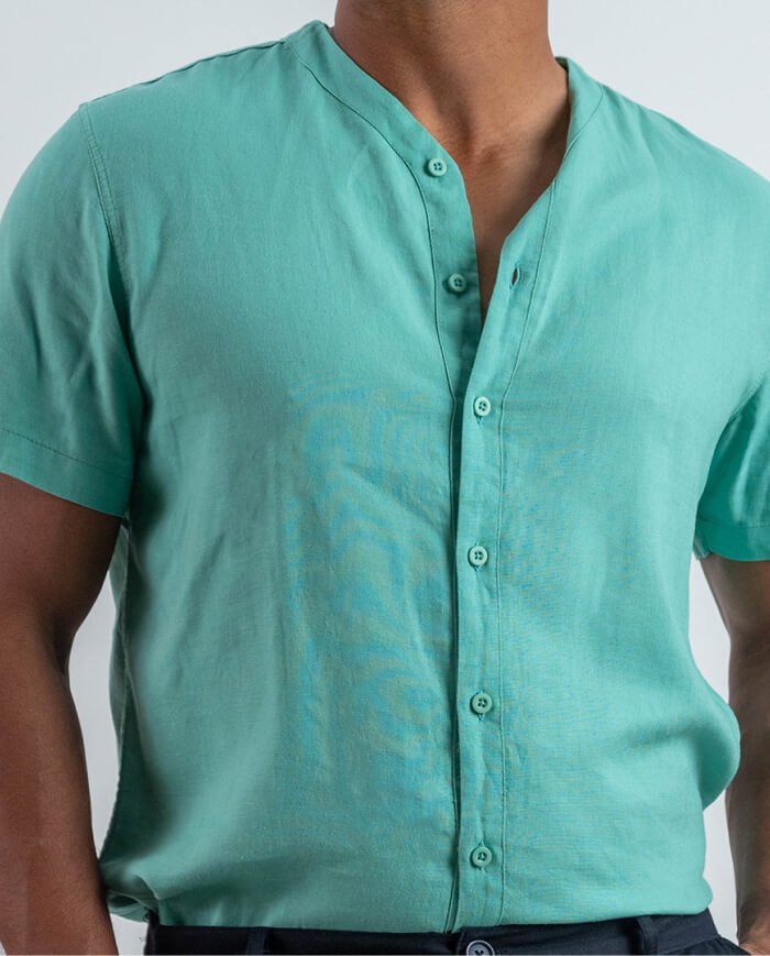 Infinity Collar Linen Short Sleeve Shirt – Mint Green