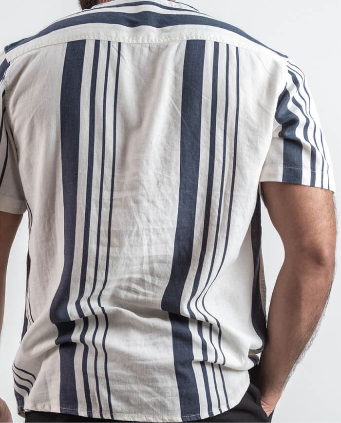 Infinity Collar Linen Short Sleeve Shirt – Stripe