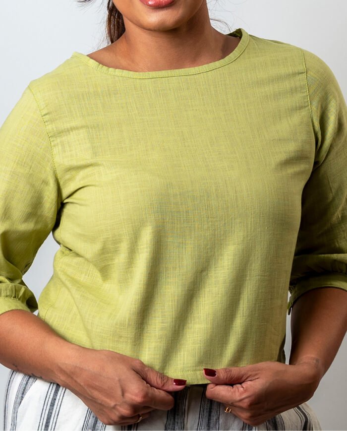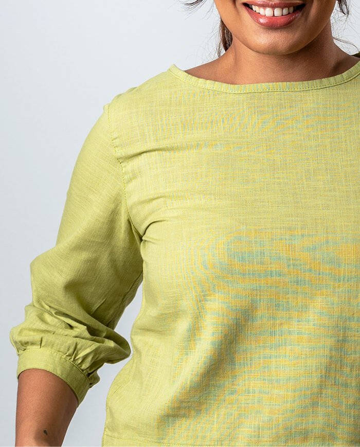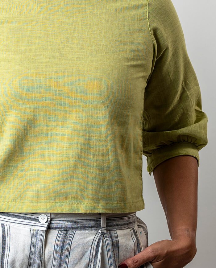 The Batiste Linen Short Sleeve Crop Shirt – Yellow